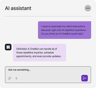 Say goodbye to repetitive tasks and missed opportunities. Our AI solutions give you the power to scale your business.